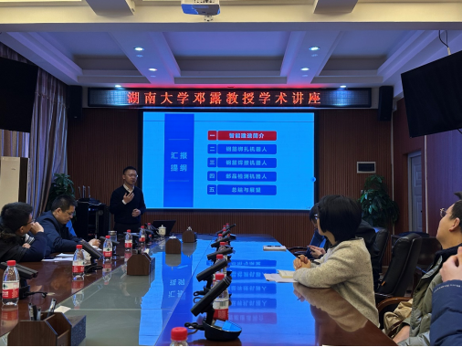 12月12日上午,湖南大学邓露教授应邀做客我校“漓江讲坛”,在屏风校区4222会议室为我院师生开展题为“基于机器视觉的智能建造机器人技术”的学术讲座。此次讲座由钱凯院长主持,学院相关方向老师及研究生参与。