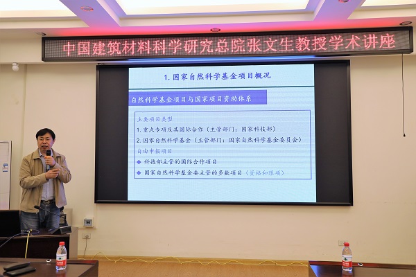 2021年4月26日下午,中国建筑材料科学研究总院绿色建筑材料国家重点实验室首席专家张文生教授在屏风校区4204会议室,为我院教师开展了主题为“国家自然科学基金项目申报——以重点项目申报书为例”的培训活动。