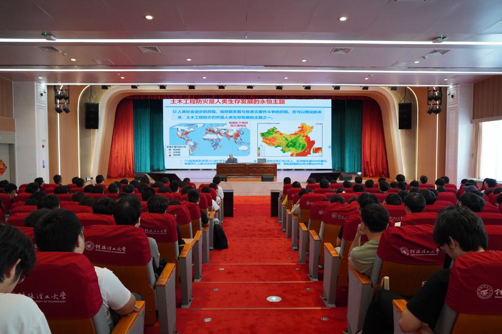 5月12日下午,应土木工程学院邀请,中国科学院院士李杰在屏风校区文化活动中心为我校师生作题目为《土木工程学科研究发展前沿》的学术报告。报告会由学校副校长王磊主持。土木工程学院师生代表800余人参加了报告会。