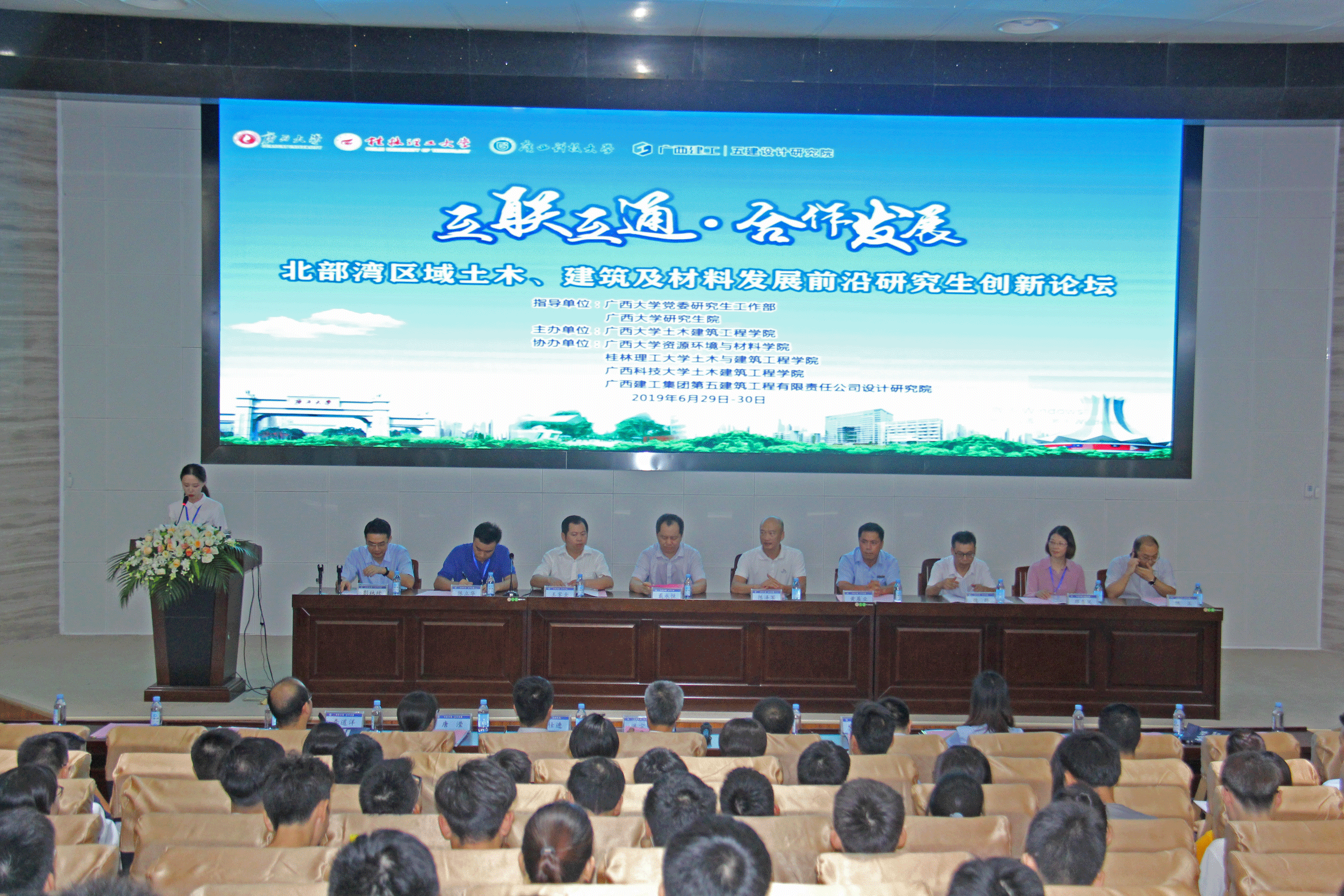 2019年6月29号到6月30号,“互联互通•合作发展”北部湾区域土木、建筑及材料发展前沿研究生创新论坛在广西大学举办,我院院长助理邓春凤老师率领13名研究生代表参与了本次论坛。此次论坛由广西大学土木建筑工程学院牵头主办,广西大学资源环境与材料学院、桂林理工大学土木与建筑工程学院、广西科技大学土木建筑工程学院及广西五建设计研究院共同协办。