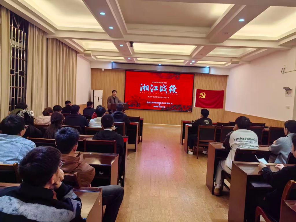 为深入弘扬伟大抗战精神,传承红色基因,筑牢理想信念根基,12月10日晚,学院研究生第二党支部在屏风校区4204会议室,组织开展了以“铭记湘江战役,砥砺复兴之志”为主题的党课学习活动。本次党课由支部书记刘浏同志主讲。