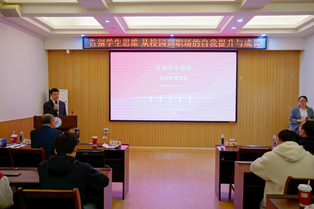 会上,彭必建总经理结合自身丰富的职业经历,深入剖析了学生思维与职场思维的核心差异。他强调,毕业生需尽快树立责任意识、团队精神和结果导向,完成从被动接受到主动担当的角色转变。他鼓励同学们保持持续学习的态度,勇于在实践中锤炼专业技能,提升综合素养。