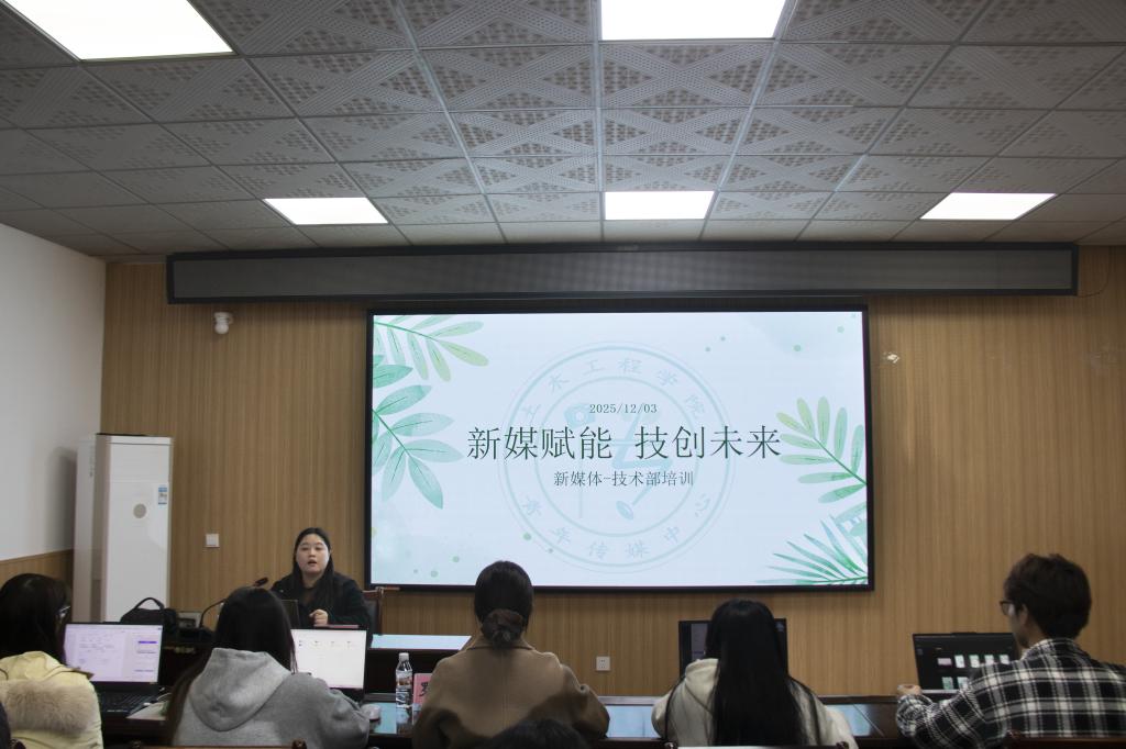 为适应新媒体时代发展要求,进一步提升学生骨干的宣传素养与视觉表达能力,2025年12月3日19时30分,由土木工程学院青年传媒中心主办的“新媒赋能 技创未来”新媒体技能培训大会在屏风校区4203教室及线上直播间同步举行。本次大会特邀桂林理工大学学生工作部(处)林玉梅老师主讲,学院青年传媒中心指导老师罗银霞主持,学院各班宣传委员及各学生组织代表共同参与。