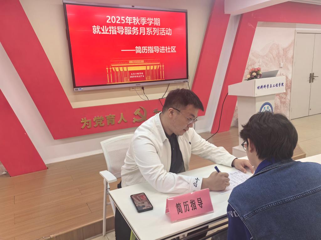 10月27日下午,学院在屏风校区“材苑”一站式学生社区成功举办“简历指导进社区”活动。本次活动作为学校2025年秋季学期就业指导服务月系列活动的重要一环,旨在将就业指导服务前置下沉,直接送达学生身边。