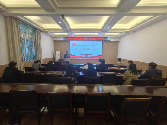 为推动新修订的《中国共产党纪律处分条例》的贯彻学习,引导党员严守政治纪律,强化责任担当,4月18日,教工第二党支部组织全体党员学习《中国共产党纪律处分条例》。会议由支部书记江雪同志主持。